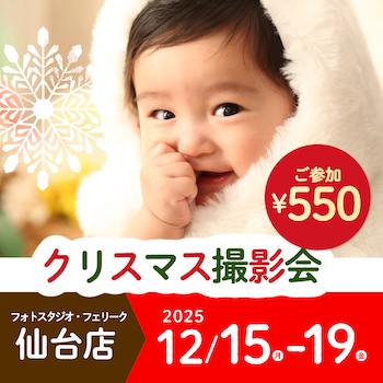 新しい命の誕生を祝う、大切なお宮参り。健やかな成長を願い、ご家族の想いを写真に込めませんか。やわらかな光に包まれたスタジオで、赤ちゃんも安心して過ごせます。ご家族みなさまとのショットや、きょうだいとの自然な笑顔もお撮りします。今しか残せない小さな表情を、心をこめて記録いたします。お宮参りの記念は、スタジオ・フェリーク仙台店・山形店にお任せください。 🎀感謝を込めて 39(サンキュー)プラン・データプラン/39,000円(税込):USBにて全データお渡し・よくばりプラン/39,000円(税込):飾れるウッドパネルと10カットデータ・シンプルプラン/39,000円(税込):アルバムのみの定番プラン! 🧡6大特典・撮影料金無料・パパママ着物衣装レンタル無料・パパママ着付け無料・キーホルダープレゼント(撮影したデータの)・データ1枚LINEでプレゼント(LINEお友達登録いただいた方が対象です)・お宮参りお祝い着レンタル無料 利用したい店舗のLINEにてご希望の来店お時間をお伝えください。ご相談やお問い合わせも承っております。 ________________________________________________ 🩷フォトスタジオ・フェリーク 仙台店〒980-0811 宮城県仙台市青葉区一番町3-3-1 Kurax3FOPEN:10:00-19:00 (不定休/Kuraxビルの休みに準ずる)🚗 Kuraxビル提携駐車場あり ※下記案内図を参照ください(3,000円以上のお会計でサービス券発行いたします) 💚フォトスタジオ・フェリーク 山形店〒990-2453 山形県山形市若宮1030-1OPEN:10:00-18:30 水曜定休日🚗 駐車場あり(約20台)